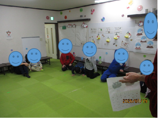 グループ活動で画用紙を使ったかまくら製作をしました。